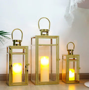 💡【GREAT DETAILING】The large size is 8'' x 8'' x 19'', medium szie is 6'' x 6'' x 15'', small size is 5'' x 5'' x 12''. The lantern is made of metal and four pieces of tempered glass, which is stronger than ordinary materials. The top of the product has a hollow design, and there is a vent above the candlestick, which can circulate the air in the candlestick, and the small door on the side can be easily opened and closed.