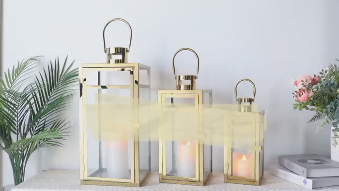 💡【VERSATILE DESIGN】These lantern set includes three lanterns of different sizes. These lanterns of different sizes can be placed on any surface or hung by decorative rings. Suitable for various styles: From farmhouse to decoration, wedding to everyday life. This lantern is the perfect choice to show off your favorite scented, tealight or LED candle(NOT included).