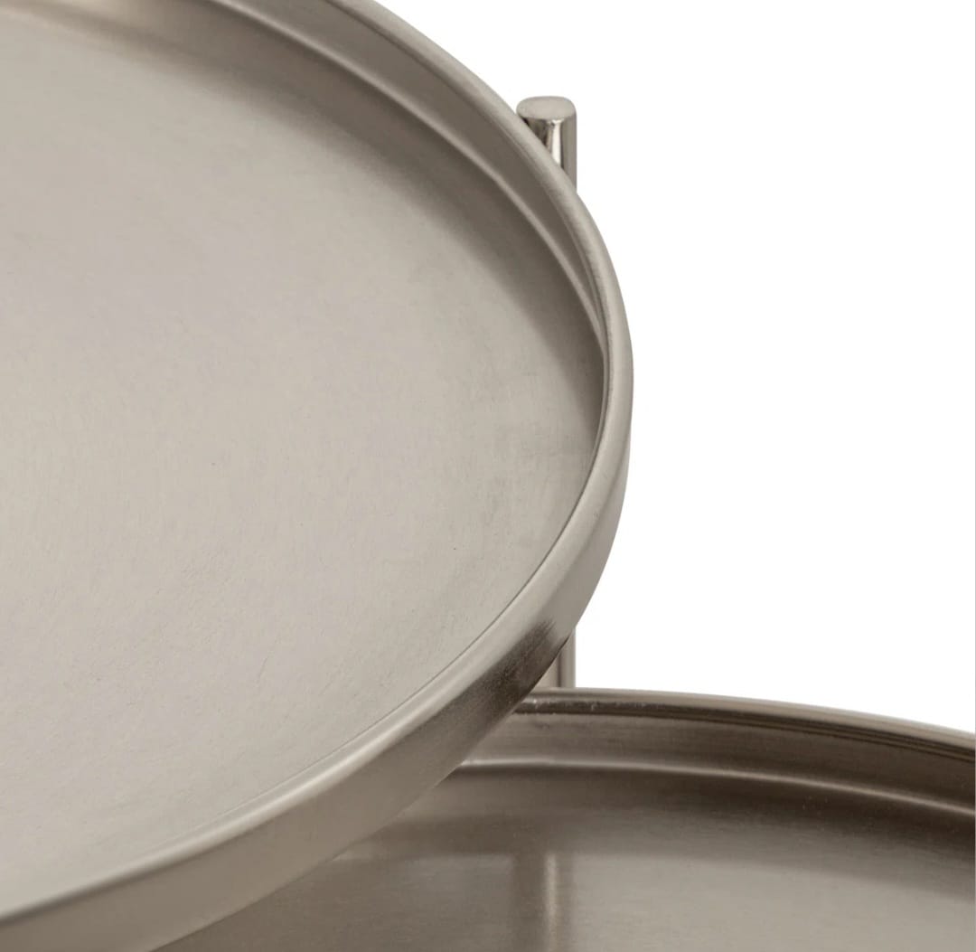 From its minimal look to its space-conscious design, this nesting table set brings style and functionality to your space. These tables have a clean-lined frame with slim, tripod legs and angular crossbar supports for a modern vibe. The round surfaces have raised edges to help keep whatever you stage on them (succulents, accent pieces, a lamp) from falling off. Plus, thanks to their pull-out design, you can easily separate these two tables when you need more surfaces and tuck them together when you need more space.