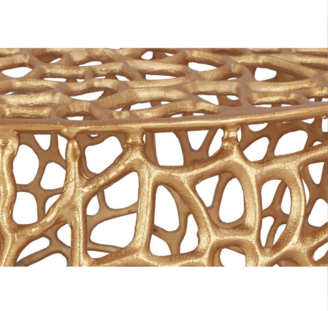 Bring modern elegance and up-to-the-minute sophistication home when you grab this coffee table for your living room or family room. An intricate maze of woven aluminum, this coffee table instantly grabs the eye from all angles. A perfect addition in front of a sectional or couch, this coffee table's ample size gives it limitless possibilities - from display space and room for holding drinks to nearly 3 feet of room for setting up a Monopoly or Scrabble board on family game night.