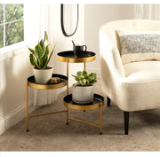 This edition of our Samara tri-level plant stand offers a compact design for multiple ways to display. The Oquendo plant stand has a 100% all-metal construction, designed with three tiers for various display surfaces. These three tiers collapse into one another as well to save space in your home and create a chic accent piece. It also has compact dimensions, too; each of the three tiers has a 12.5-inch diameter, while the overall height of this plant stand is 22 inches tall. This size is perfect for showcasing the Oquendo tri-level plant stand by a windowsill, by a side table, or on a large console. The three tiers are excellent for creating dazzling botanical-themed displays with seasonal plants in your entryway, dining room, living room, bedroom, or kitchen! This piece isn't only for plants, either! Use the Oquendo tri-level plant stand as a storage catch-all for makeup, jewelry, and other household items.